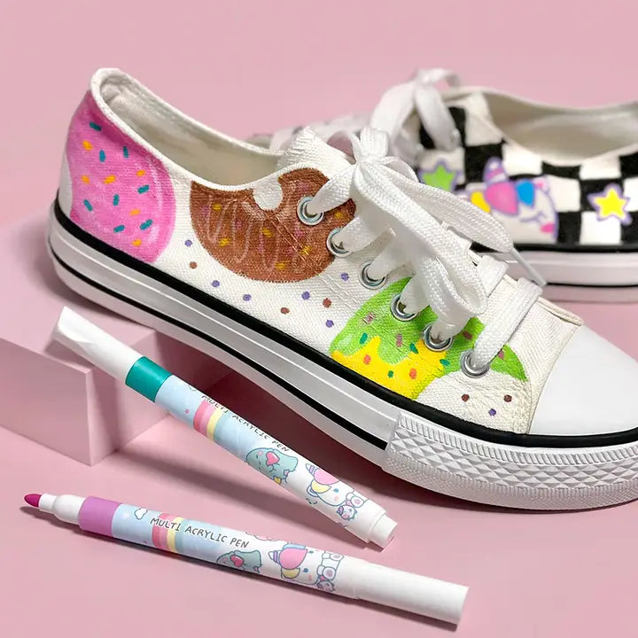 included with high quality acrylic pens, that can be used at any surfaces to decorate fabrics/ shoes/ cups, etc. Shoes, cups, vase, t-shirts are not included. Acrylic pens are reusable with multi purposes.