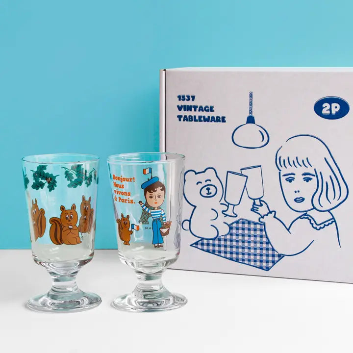 1537 Vintage Glass Cup- S 2Pcs Gift SET Drinkware