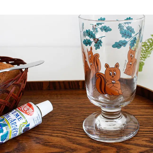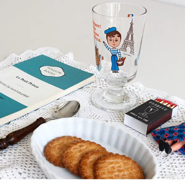It is a tumbler-type long glass cup with two fresh and fresh illustrations.