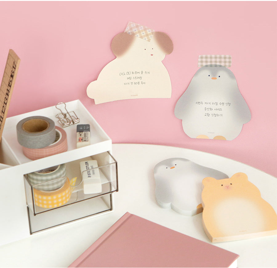 Brighten up your notes with the Animal Friends Mini Non-Adhesive Memo Pad series. Featuring four adorable animal shapes—hamster, penguin, dog, and cat—these memo pads are perfect for jotting quick messages, reminders, or doodles. Made without adhesive, each sheet can be easily placed, clipped, or taped wherever you need.