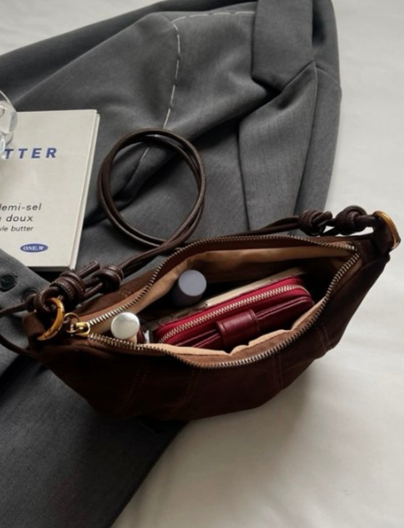 Crafted from soft, premium suede with a unique crescent silhouette, this bag combines minimal elegance with everyday practicality.