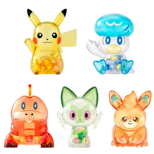This officially licensed Bandai figure series features your favorite Pokémon in a dazzling crystal-clear style. Each box includes 1 figure, randomly selected from Pikachu, Sprigatito, Fuecoco, Quaxly, or Pawmi. With translucent bodies and bright inner accents, these are perfect for Pokémon fans and collectors.