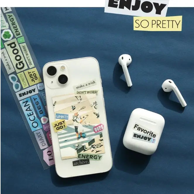 Designed to look like cut-out magazine clippings, this tape features letters and words in a variety of fonts and colors — perfect for creating aesthetic, personalized messages.