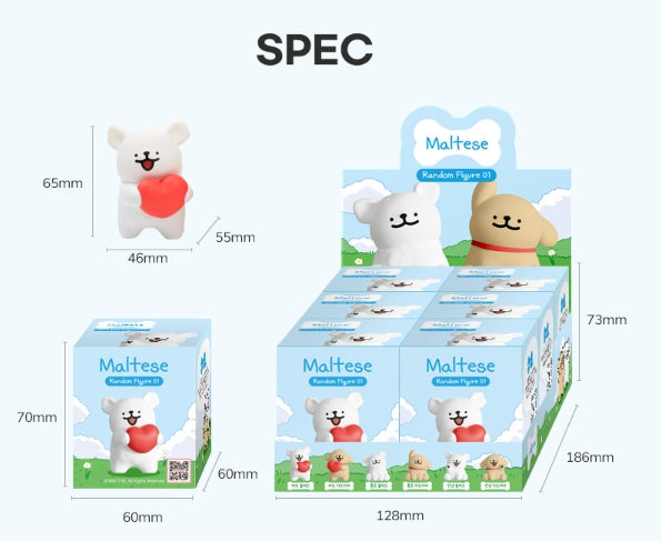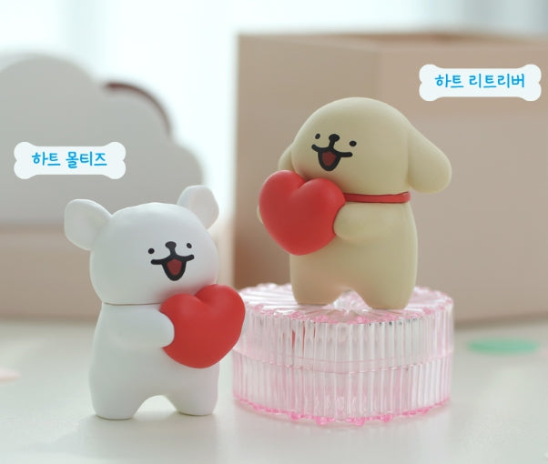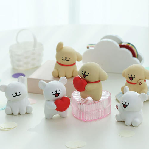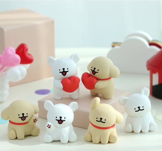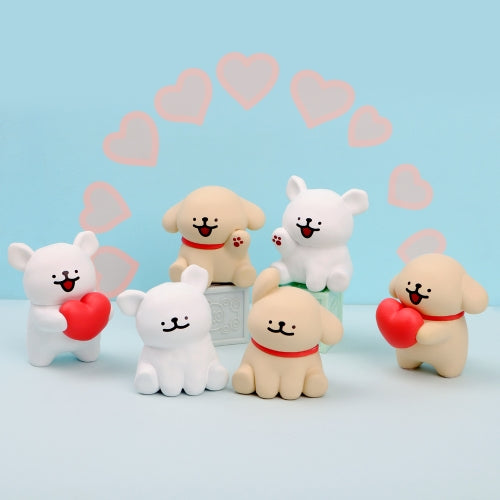 This blind box series features 6 lovable dog figures — playful Maltese and sweet Retriever friends in various poses, including heart-holding variations. With their soft matte finish and charming expressions, they make the perfect collectible or gift!