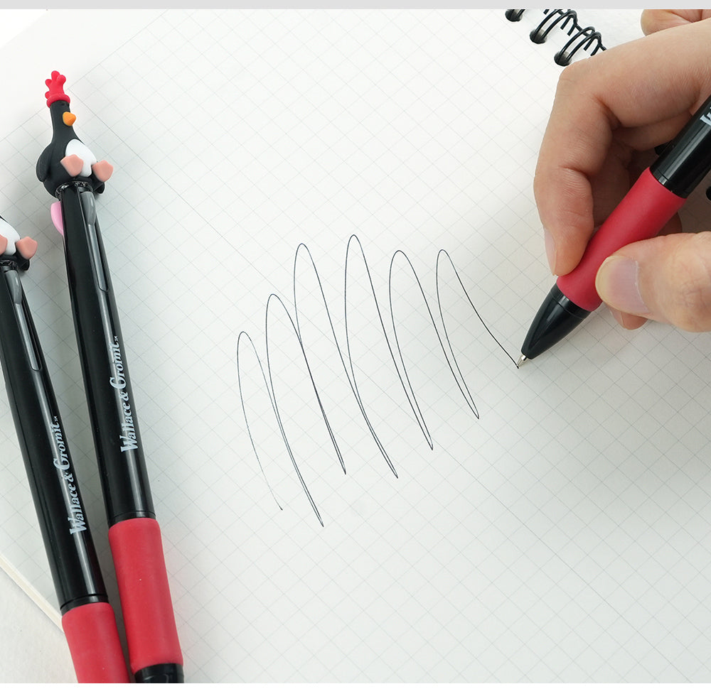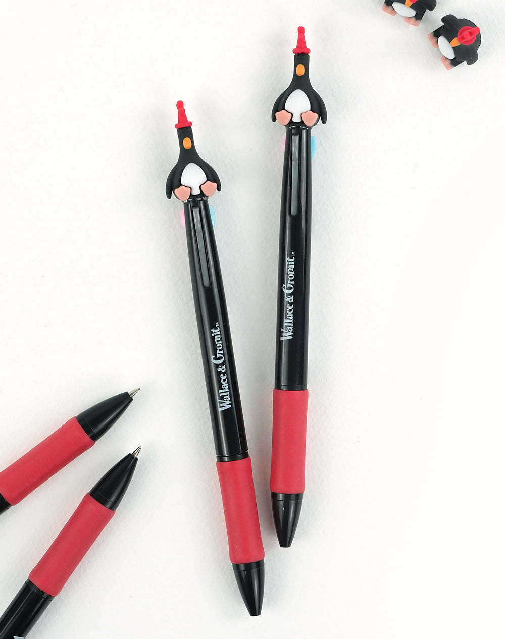 Write with a touch of British charm! This officially licensed Wallace & Gromit 3-color ballpoint pen features a fun and functional design with a mini Gromit figure hanging from the top. With black, blue, and red ink options in one pen, it's perfect for color-coded notes, journaling, or daily to-dos. The comfortable grip and smooth ink flow make writing a pleasure, while the playful Gromit charm adds personality to your pencil case or desk setup.