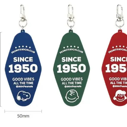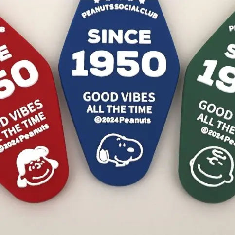 Shaped like a classic motel key tag and featuring beloved characters like Snoopy, Charlie Brown, and Lucy, this limited-edition keyring also doubles as a handy mini mirror on the back.