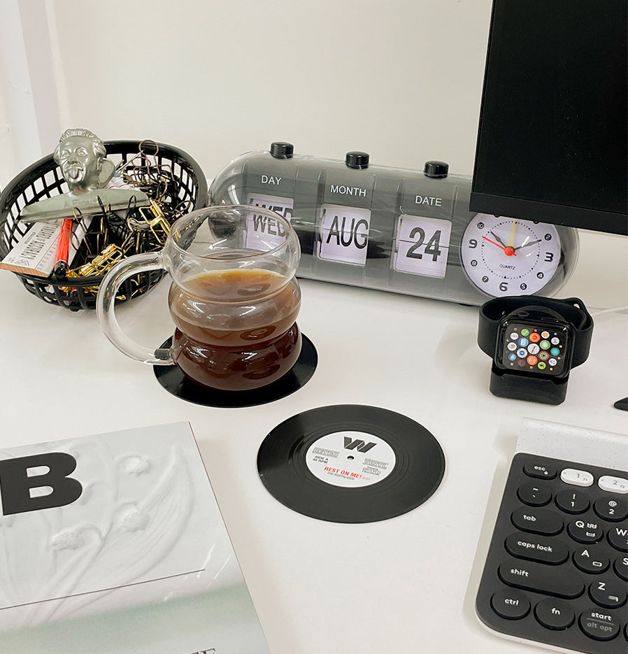 Add a retro vibe to your table with the Vinyl Record Drink Coaster Set. Designed to look just like classic LP records, these coasters bring a playful mix of nostalgia and practicality to any space. Each set includes 6 different designs, making them a fun and eye-catching way to protect your surfaces from drink rings and spills.