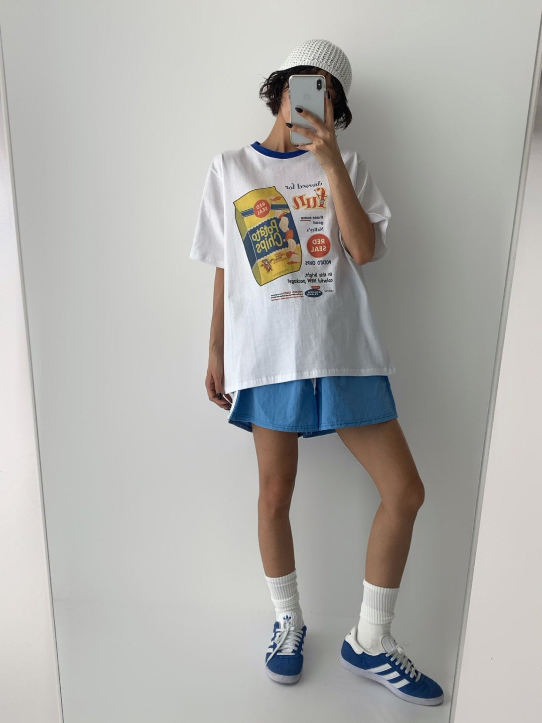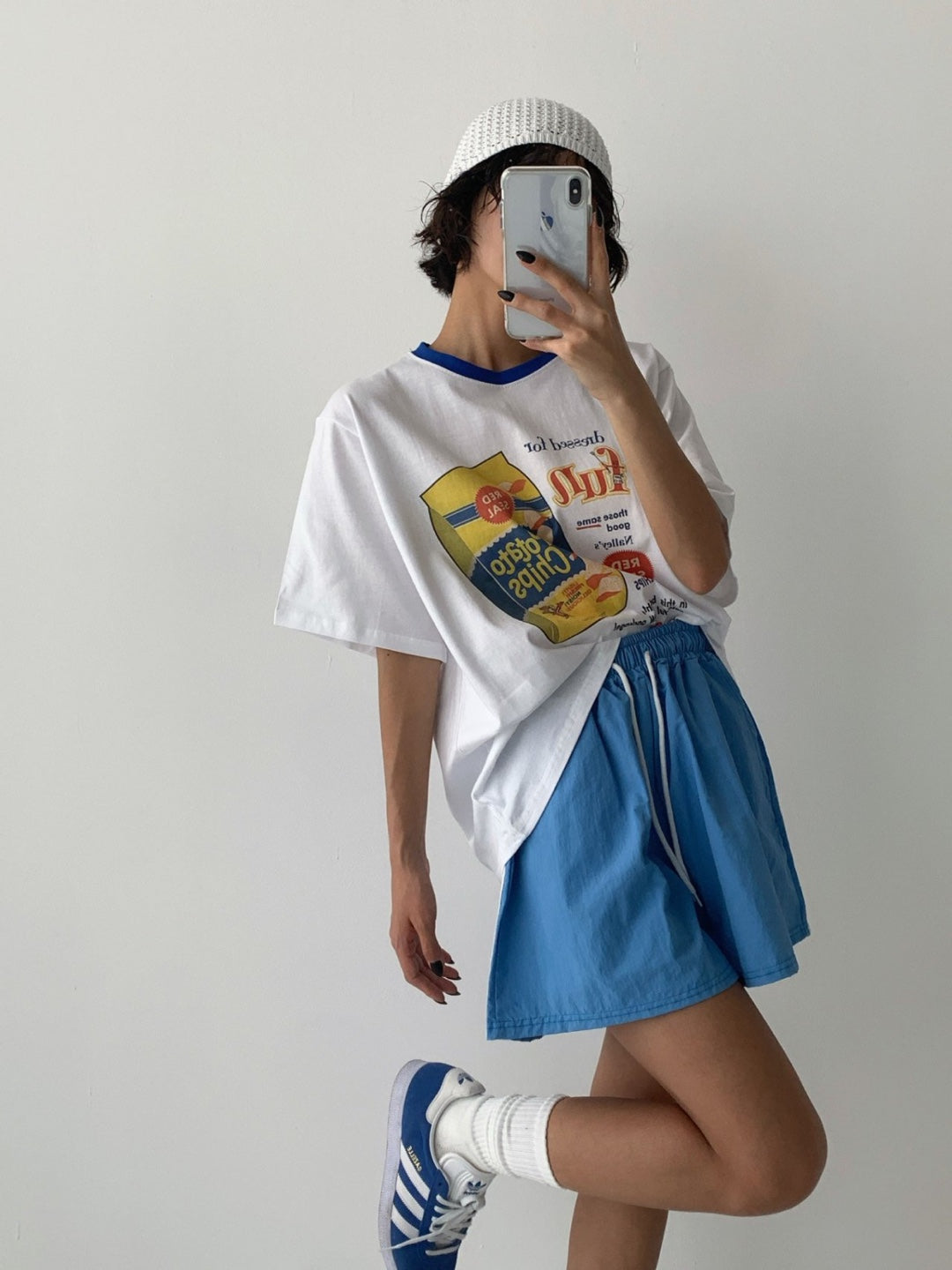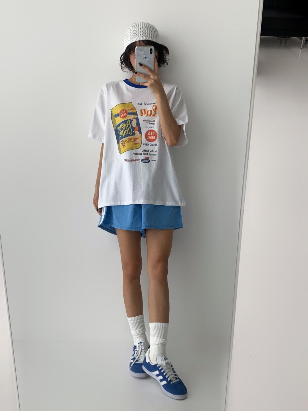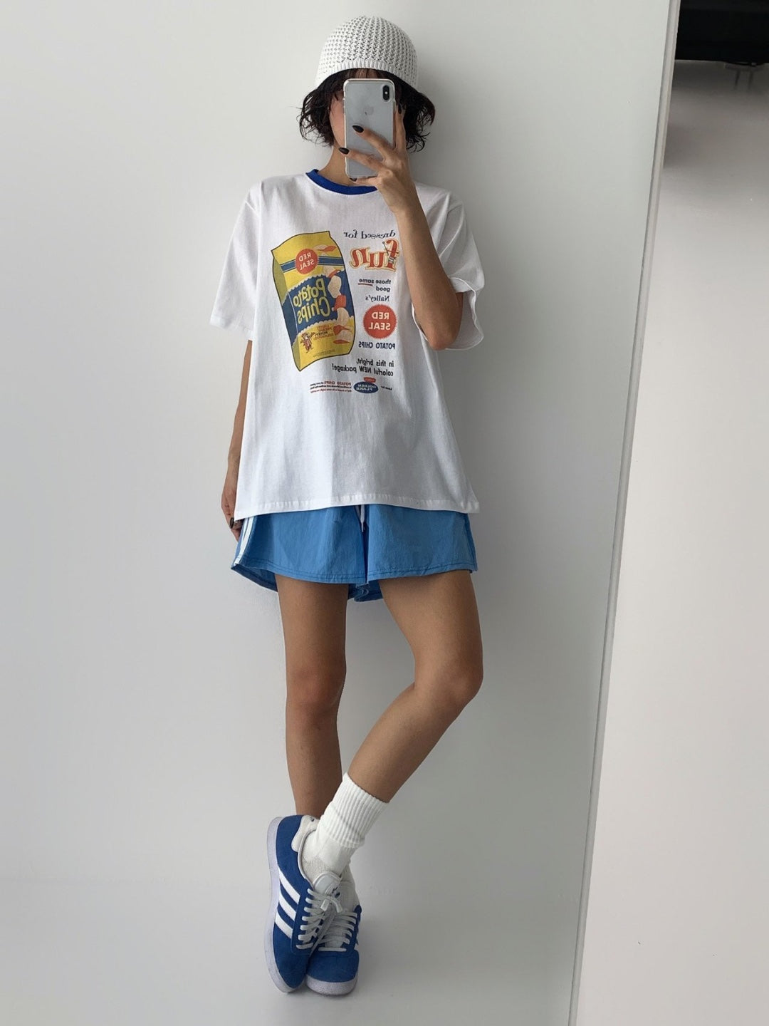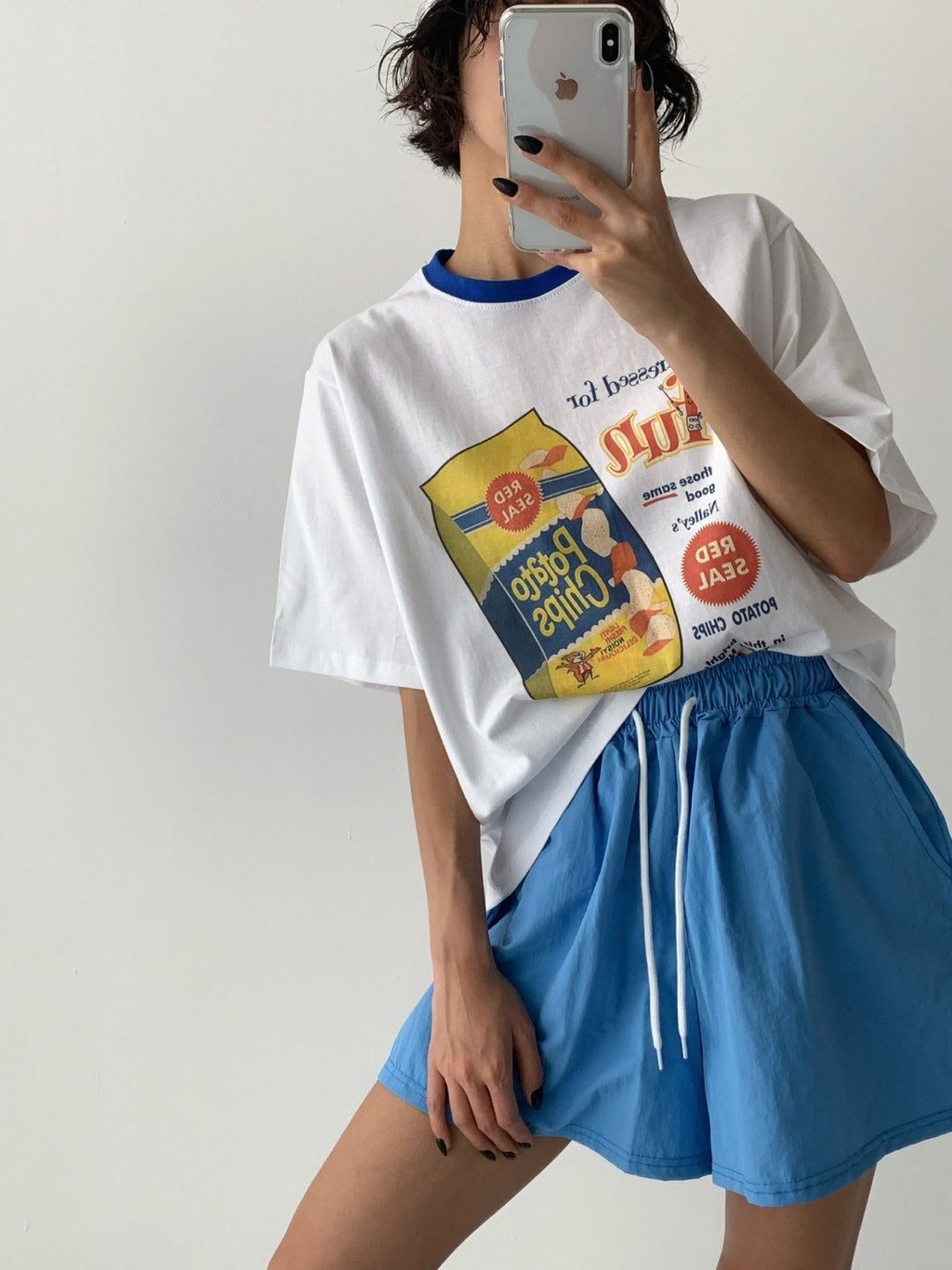 Add a pop of retro charm to your everyday look with this Vintage Snack Graphic Ringer T-Shirt. Featuring a playful potato chips print inspired by old-school packaging, this tee brings nostalgic vibes with a modern twist. The green contrast collar adds a sporty touch, making it perfect for casual styling.
